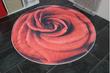 Ömür - ince kirmizi gül desenbaskili 150 x 150 cm gül desenli Yuvarlak HALI ! 30 derecede yikanabilir....LATEX SIRTLI!
